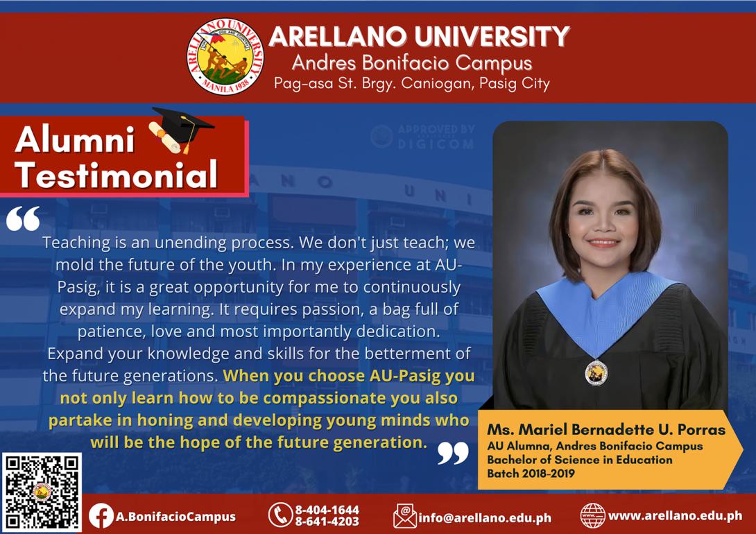 Alumni Testimonial (AU Pasig) - Ms. Mariel Bernadette U. Porras