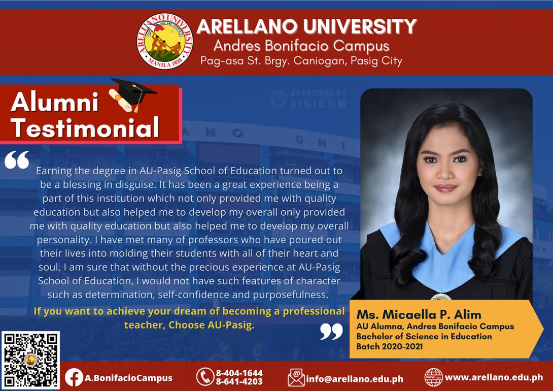 Alumni Testimonial (AU Pasig) - Ms. Micaella P. Alim