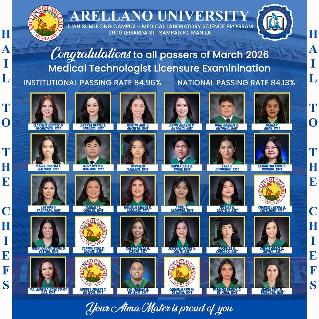 March 2026 — Arellano University’s commitment to healthcare excellence shines once again as the Medical Laboratory Science Program at the AU - Juan Sumulong Campus proudly announces its newest cohort of licensed professionals.