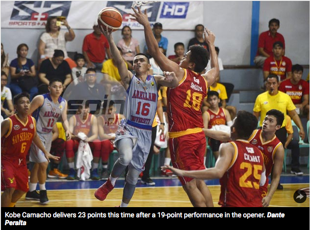 Camacho, a transferee from Lyceum, sizzled with 13 points in the first half, before Segura, a recruit from Davao, pumped in 15 in the second.
